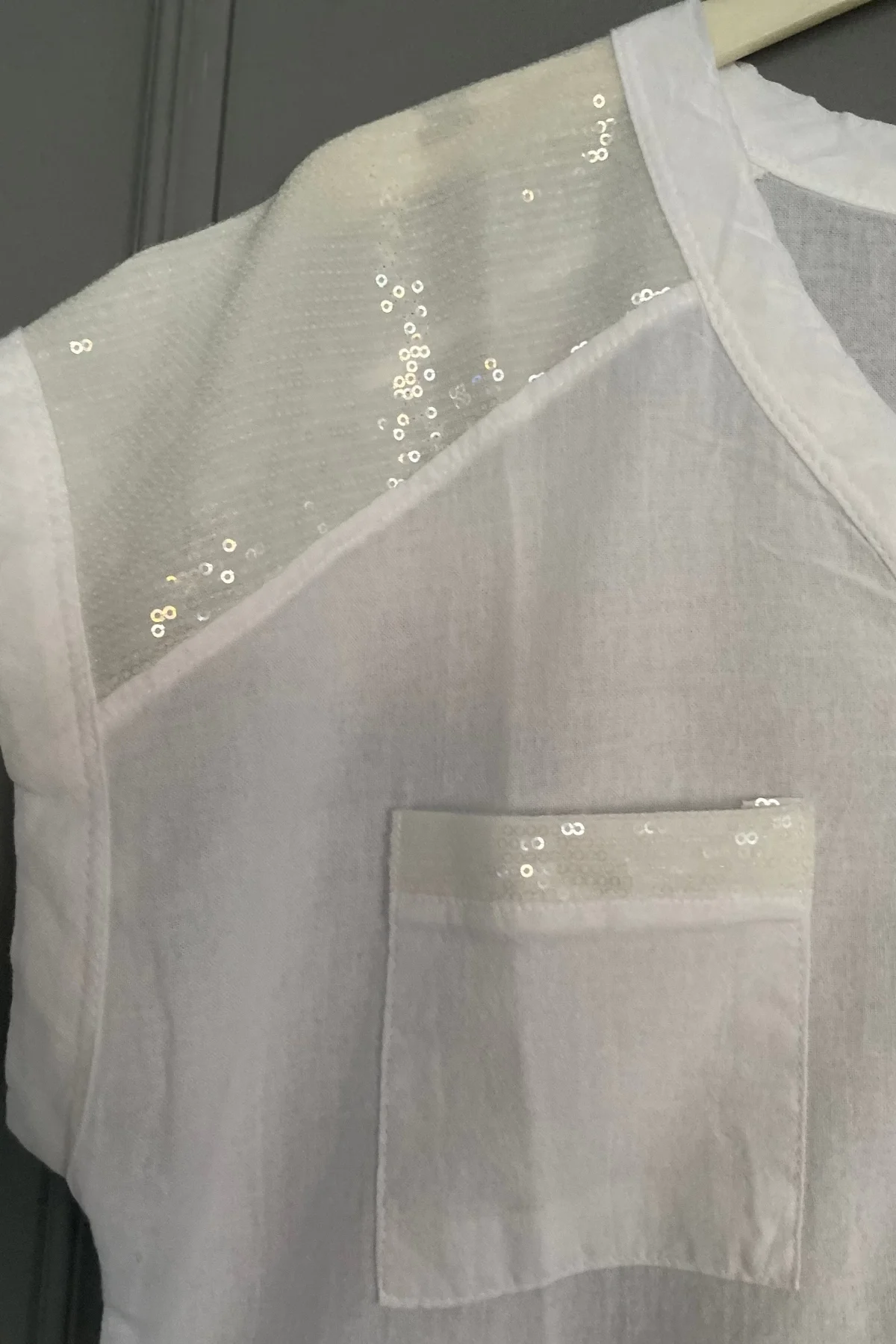 Kadın Beyaz Omzu Ve Cebi Pulpeyet Nkışlı Keten Kumaş Kısa Kol Buluz Gömlek