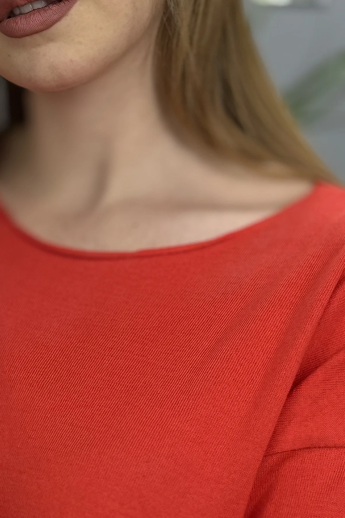 Kadın NAR ÇİÇEĞİ Kayık Yaka Likralı % 100 PAMUK İPLİK İnce Triko Bluz