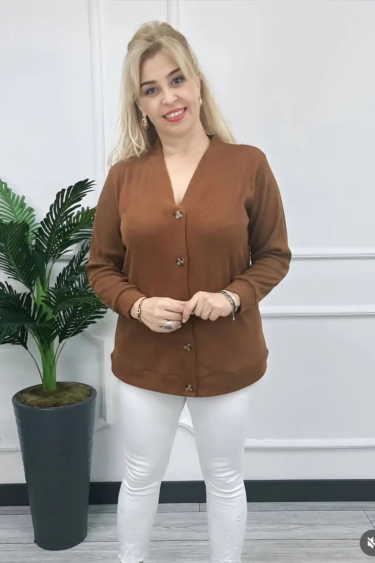 Kadın Tarçın Düğmeli Huviz Kumaş Likralı İnce Titiko Hırka